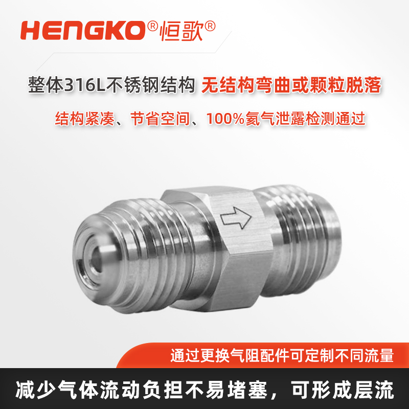 RF系列多孔金屬限流器采用高純316L不銹鋼燒結(jié)技術(shù)制造,適用于高壓、高流量、超高純氣體輸送系統(tǒng)。當(dāng)氣體管線破裂、閥門異常或調(diào)壓器失效時,它能自動限制過量氣體瞬間噴出,有效保護氣路系統(tǒng)安全,避免工藝中斷或設(shè)備損壞。