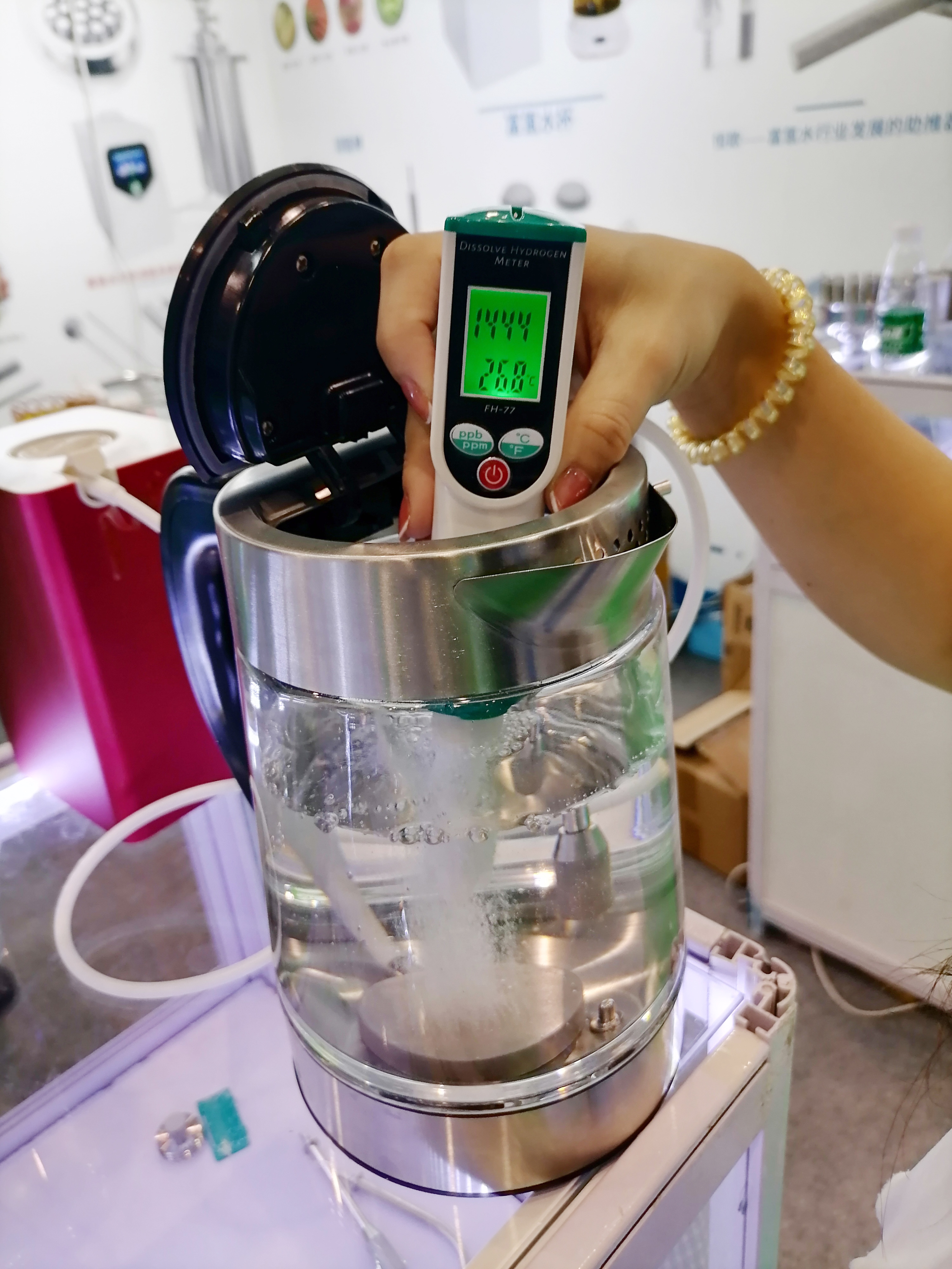 ??????? 恒歌溶氫棒作為拳頭產(chǎn)品,一經(jīng)展出受到觀眾的熱烈追捧,展位上人流絡(luò)繹不絕。觀眾紛紛停下腳步了解恒歌這款溶氫棒。