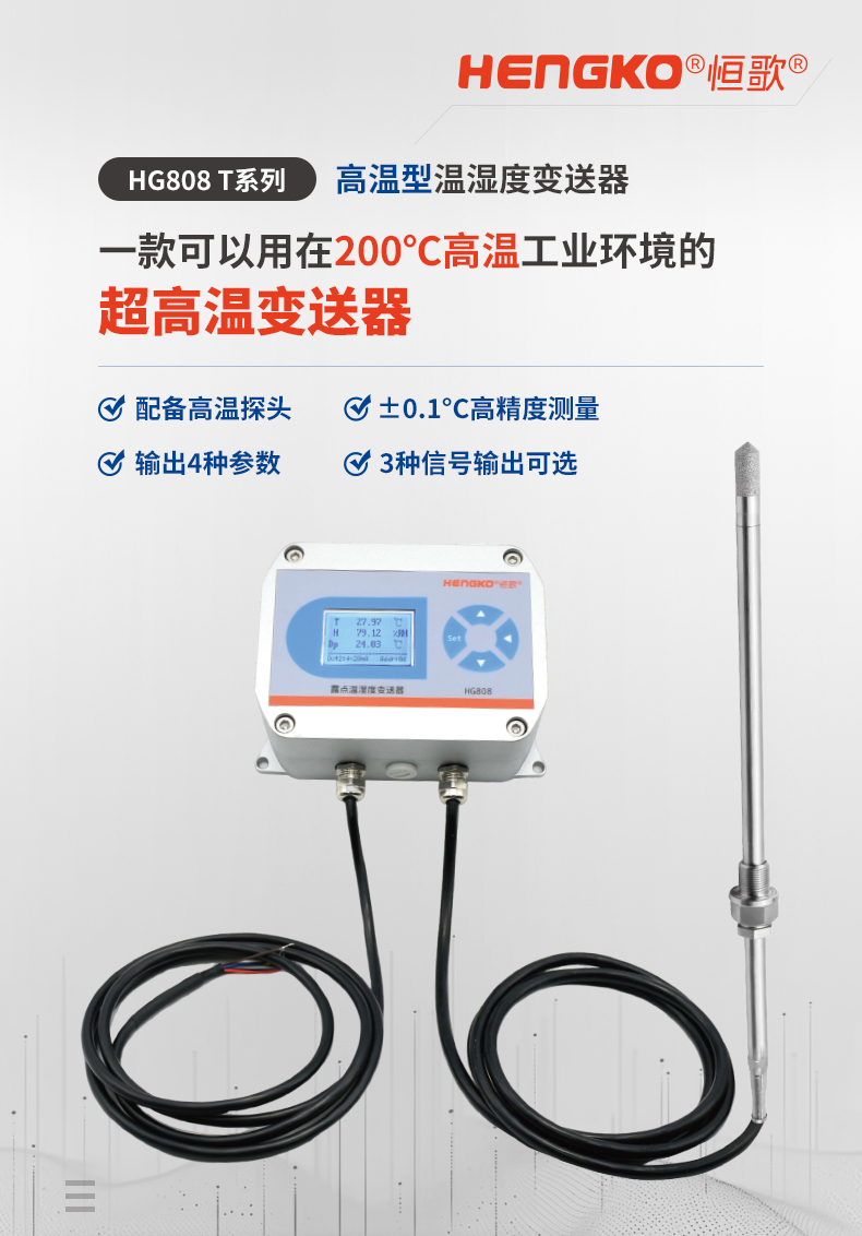 HG808-T系列溫濕度變送器,一款可用在200°C高溫工業(yè)環(huán)境的變送器