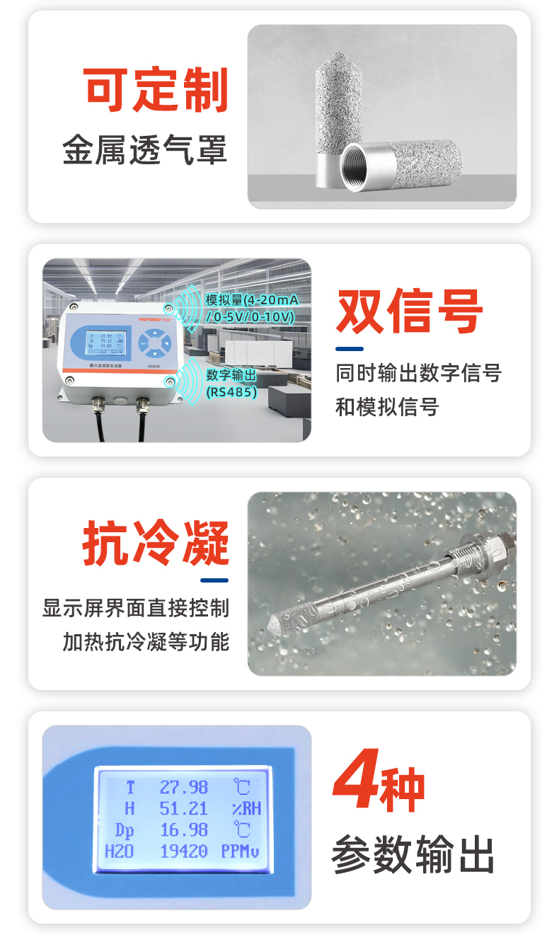 HG808-T是一款專為200°C高溫惡劣環(huán)境設(shè)計(jì)的工業(yè)級超高溫變送器,同時(shí)測量和傳輸濕度參數(shù)。采用耐超高溫的傳感元件,具有測量準(zhǔn)確、適應(yīng)溫度范圍廣、長期穩(wěn)定等特點(diǎn),此外,耐高溫設(shè)計(jì)使得變送器在85~180°C高溫環(huán)境下仍然具有良好的溫濕度采集性能,廣泛被客戶認(rèn)可并成熟應(yīng)用到爐窯、高溫烤箱、焦煤氣管道等各種高溫氣體采集工況。